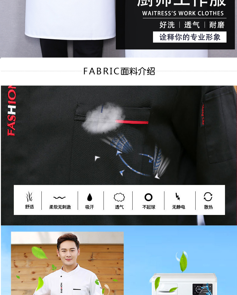 廚師工作服長袖薄款透氣款
